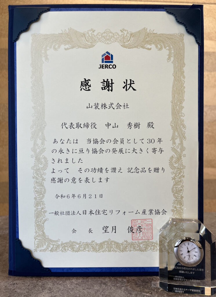 協会在籍 30 年の永年表彰をして頂きました。
