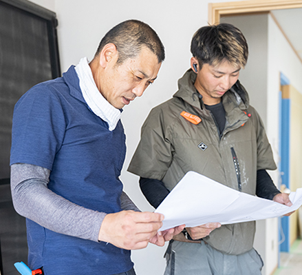 一貫対応だから安心当社では、営業担当を介さず、プランを考える設計士や現場管理者が直接お客様とやり取りを行います。そのため、「話が通っていない」というストレスがありません。