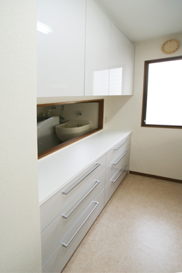 奥の物が届きにくかったワークトップ、奥行きを75cmから65cmにサイズ変更しました。