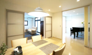 ダイニング・リビング・洋室 の3部屋をフレキシブルに使えるようにしました。