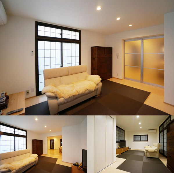 こげ茶の畳の下には床暖房を、窓には畳に合わせてこげ茶の内窓を3面の全窓に採用し、壁には断熱材を入れました。