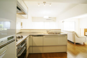 キッチンはクリナップのラクエラを採用。ショールームで「ホワイトかダークか・・・」悩んだ末ホワイトに決定しました。普通でもショールーム見学は大変なのに、臨月のお腹をさすりながらの長時間に渡る仕様決め・・・母は強し!と思いました。