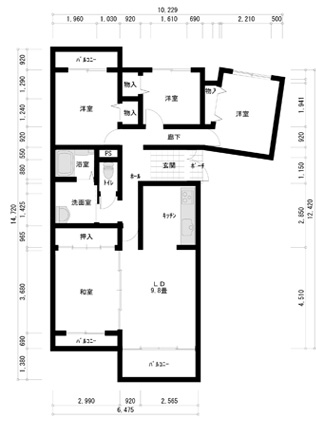 壁式構造の為、間仕切りの垂れ壁部分を撤去できなかったのが残念ですが・・・