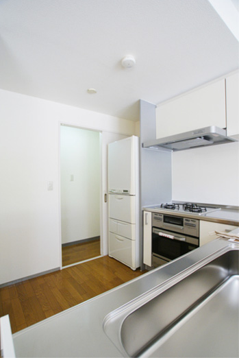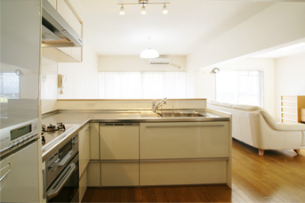 奥様の強い希望で、I型キッチンをパントリー付のL型キッチンに。