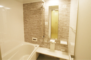 壁も床もグレーの暗い浴室でしたが、レンガ調パネルのスタイリッシュ且つ明るい浴室になりました。見た目だけでは無く、保温浴槽・エアインシャワー・ほっカラリ床など機能も充実しています。