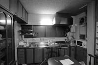 テーブルの席に着くと、人が通りにくかった細長いダイニングキッチンと、和室との仕切りを取り、広々としたLDK空間にしました。