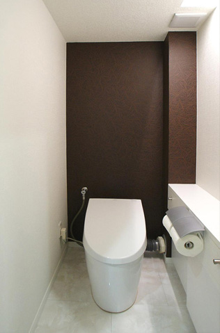 天井が低く横幅も狭かったおトイレですが、幅を広げ間接照明にしてタンクレストイレにすることで広々としました。