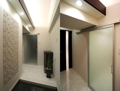 廊下幅を広げ洋室を和室に、和室を洋室に変更しただけですが、仕上げ材や建具の選び方で、こんなにスタイリッシュになりました。