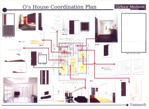 大部分を基本色の白色にし、使う色をダークブラウンとアルミ色の2色に抑え、アクセントに赤を使っています。