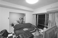 洋室との間仕切りのアルミドアは下レール無しで高さが天井まであるので開放すると大きなリビングルームとして使えます。