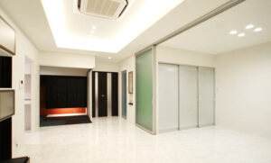 スッキリした印象を崩さない為にエアコンは全て天井埋め込み型を採用しています。