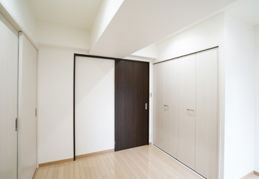 旧和室はLDKとつながる洋室(2)にして、間仕切り引き戸でフレキシブルに変わる空間にしました。