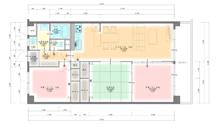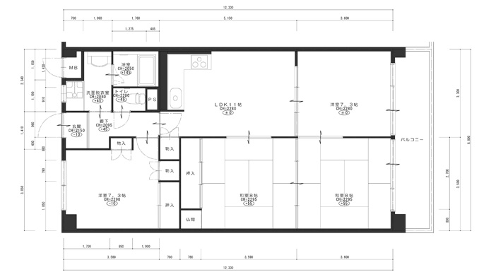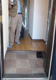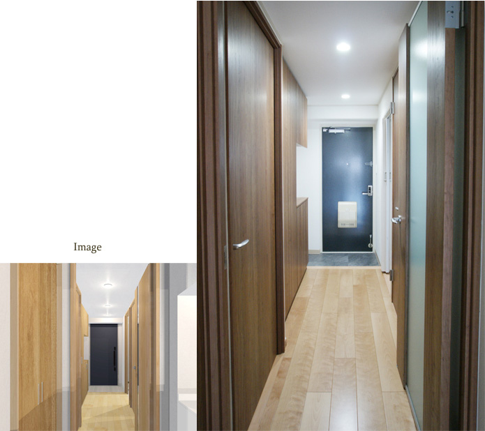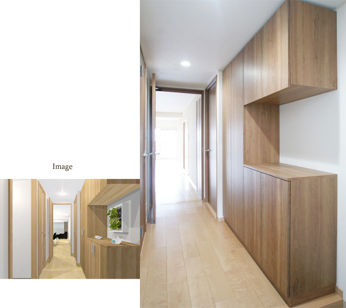 洋室(1)を一部廊下に取り込み大容量の下駄箱を設置しました。