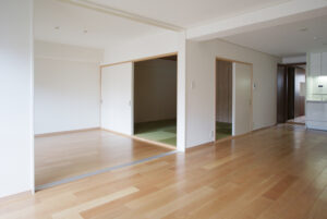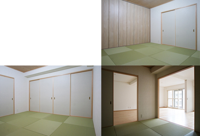縁無し畳を採用し、和室がLDKから見えても違和感のない調和が取れた空間になっています。