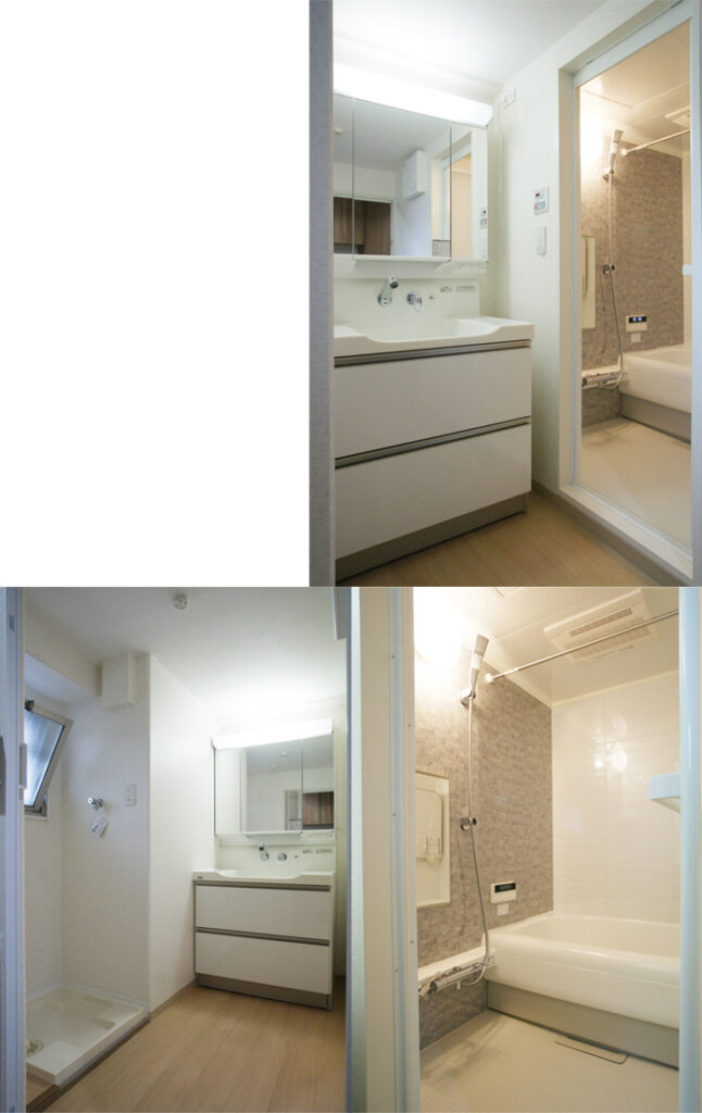 洗面台とユニットバスもトクラスを採用。暖かい雰囲気になりました。