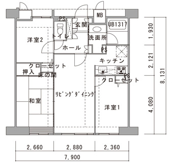 洋室をLDKに取り込み、キッチン前の壁をぶち抜いて対面にしました。