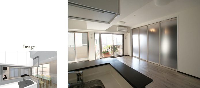 キッチンはそのままに、開放感のあるLDKに変身しました!