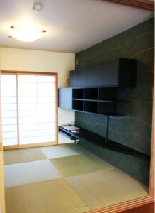 既存の家具と色合わせをし、リビングと一体にしても違和感のない和モダンな空間に。