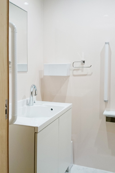 電気温水器と自動水栓で快適に手洗いができ、とても清潔です。