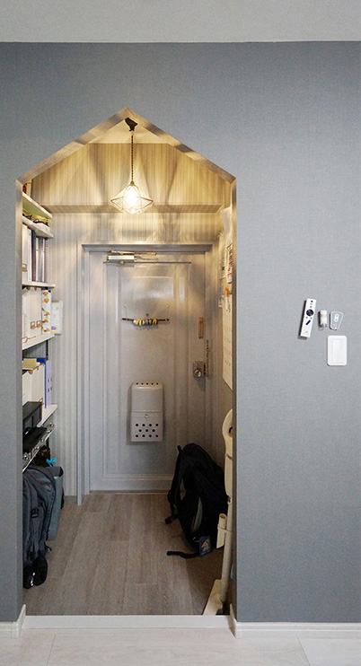 家族の予定やお子様の工作を飾ったり、味のある小部屋になりました。
