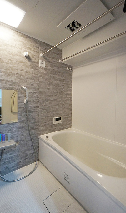 ガス給湯器がお風呂の浴槽と一緒になっているパックイン型でしたのでバルコニーに追い焚きのできる給湯器を設置しました。