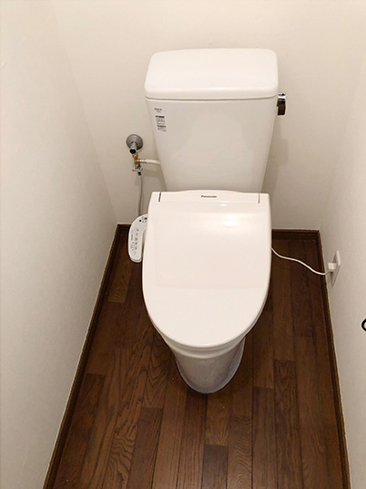 壁紙を貼り替えて床をクリーニングしたら、清潔感あふれるトイレになりました。
