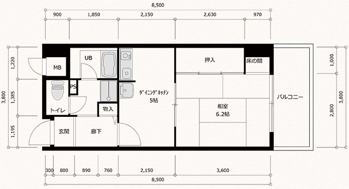 元々はマンションの集会室として使われていた部屋らしく、洗面台がLDにあるなど少し変わっていてコンパクトな間取りでした。