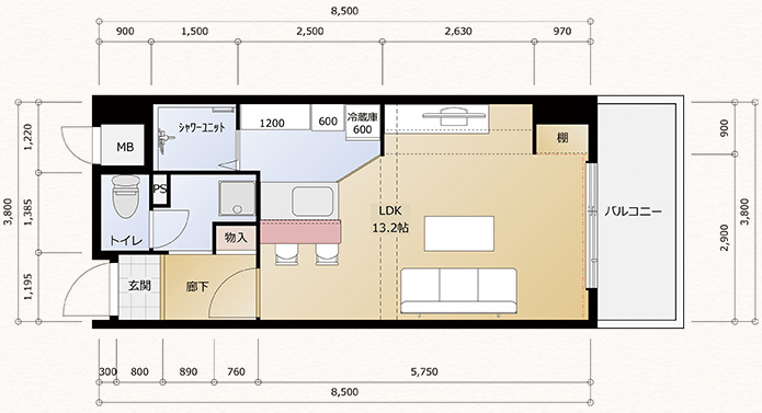 浴槽も不要とのことだったので、シャワーユニットにしてサイズダウン。
