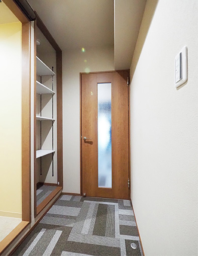 廊下もLDKと同じタイルカーペットで統一感があります。