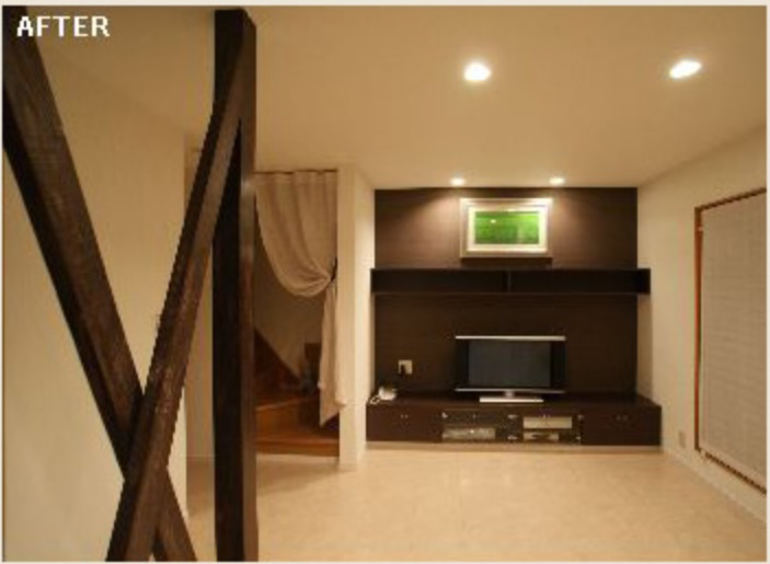 使い勝手が悪かったクローゼット・床の間を撤去して、オーダーメイドのTVボードを造り付けました。