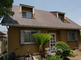内部の水廻りのリフォームと一緒に外回りの改修もご依頼受けました。安易にウレタン樹脂塗装で塗り替えることが多い中、今回は従来のリシン仕上げの自然な雰囲気を変えない様に特殊な塗料で仕上げました。