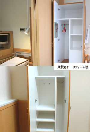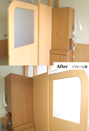 また、枕元に設置してあった冷たい印象のスチール製家具を、木製のオーダー家具に入替えました。